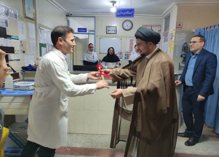 به مناسبت روز پرستار اساتید، مسئول محترم نهاد نمایندگی ولی فقیه و دانشجویان دانشکده فناوری های نوین نمین با حضور در بیمارستان امام خمینی نمین از کادر درمان این بیمارستان تقدیر و تشکر به عمل آوردند.