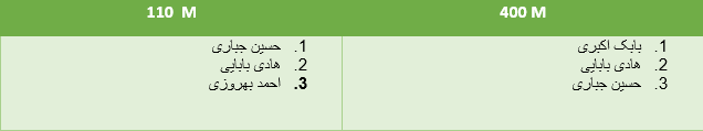 نتایج مسابقات دوومیدانی با مانع نیز به ترتیب زیر می باشد: