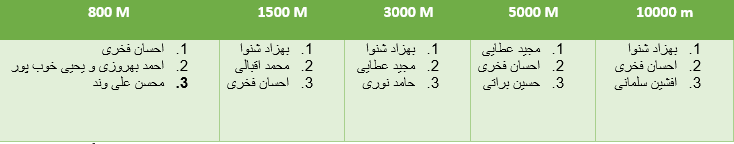 نتایج مسابقات پیاده روی نیز به قرار زیر می باشد: