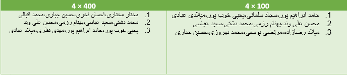 نتایج مسابقات دوومیدانی در مواد امدادی: