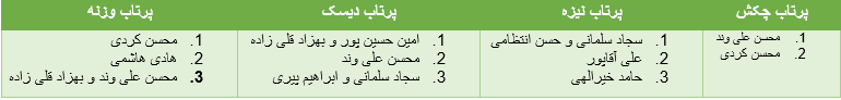 نتایج مسابقات دوومیدانی در مواد پرتاپ: